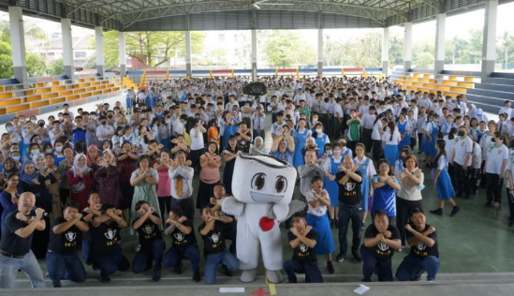 (居銮讯)国庆日前夕,位于居銮的居銮综合中学(SMK TENGKU ARIS BENDAHARA KLUANG)被国旗四色点缀得绚丽夺目。清晨时分,学生巡查员带着微笑在校门口迎候,将庄严的小国旗一一传递给全体师生,爱国情怀在晨光中悄然激荡。